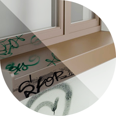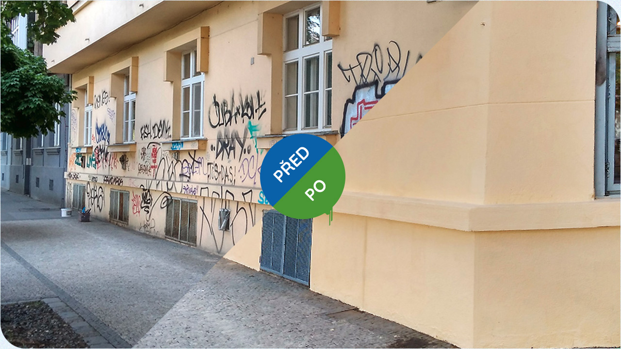 Dlouhodobě odstraňujeme graffiti z fasád domů, oken, vstupních dvěří, plotů, parapetů, rolet a garáží po celé Praze 9. Obnovujeme fasádní nátěry. Disponujeme vozidly, která jsou vybavena profesionálním čisticím strojem KÄRCHER a nádrží vody na 1 000 litrů. Vzhledem k tomu, že výskyt graffiti bývá opakovaným jevem, doporučujeme na vyčištěné povrchy nechat aplikovat ochranný antigraffitový nátěr — ochranný nátěr vytváří vrstvu mezi podkladem na spodní straně a možným graffiti na vrchní straně této vrstvy, které lze díky tomu, bez poškození podkladu, pohotově kompletně odstranit. S naším speciálně proškoleným týmem máme dlouhodobě výborné výsledky na všech typech staveb, včetně pražských historických objektů s památkovou ochranou.