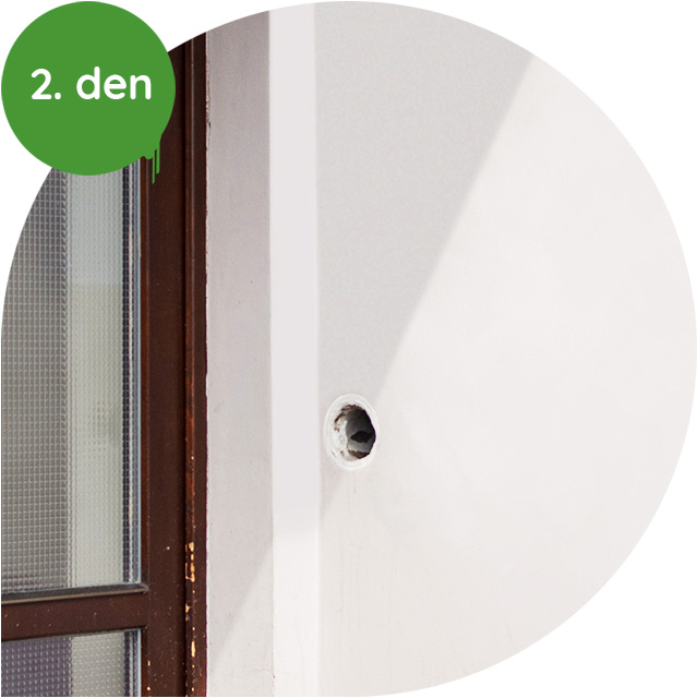 Zásah probíhá dvoufázově — první den graffiti odstraníme, necháme materiál vyschnout, abychom viděli, zda je vše do hloubky odstraněno.
